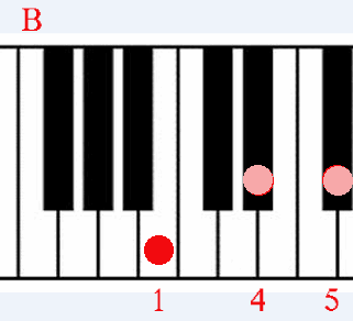 Fingering for the left hand is notated as 1 for the thumb, 2 for the pointer finger, 3 for the middle finger, 4 for the next and 5 for the little finger. That is the usual way to number the fingers on the left for the piano. For nearly all the triad chords on this chart, the numbering is 1, 2, 5, starting with the thumb. So do not be confused by the numbers on the chart which start with the little finger as 1. Although that is different notation, it is the same fingering method.
