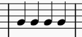 Playing in four/four time can be notated as four quarter notes in one measure, like this.