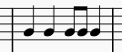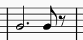 Turn that regular pulse into a rhythm by changing one or two quarter notes into notes of longer or shorter duration. Let's turn each second quarter note into an 1/8th note with an 1/8 pause or silence. The notation for that is: