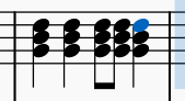 Play two 1/8th chords again but this time count the first 1/8th note as beat three and the second 1/8th as 'and'. So count '3 and' to fill the third beat.