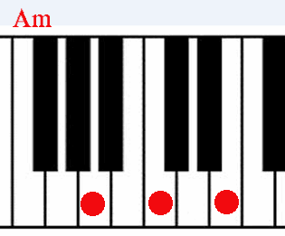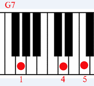 Play these triads A and G with the right hand and fingers 1, 2, 4 and play the cut G7 with 1, 2 and 5.